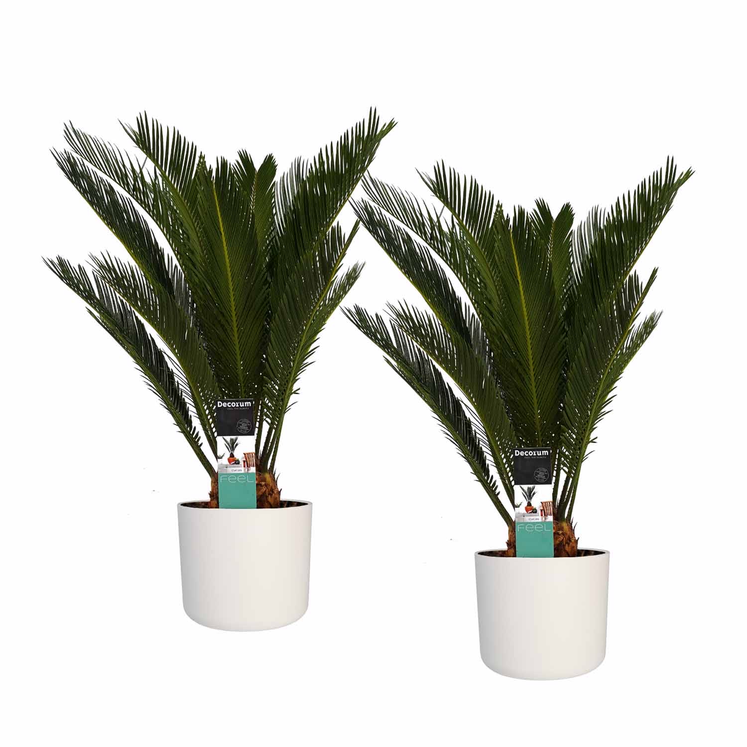 Duo Cycas Revoluta met Elho white ↑ 55 cm ⌀ 14 cm