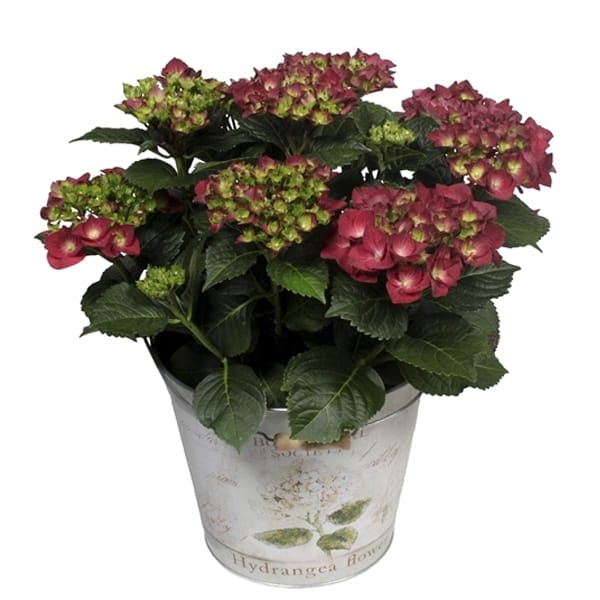 Hortensia – Hydrangea Bol Rood in Bucket ↑ 40 cm ⌀ 23 cm