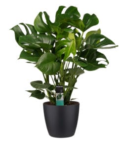 De Monstera is niet voor niets een bron van inspiratie in de mode- en kunstwereld. De monstera is één van de meest populaire kamerplanten van dit moment, een statement in jouw interieur. Deze kamerplant wordt geleverd met ELHO sierpot