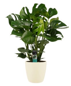 De Monstera is niet voor niets een bron van inspiratie in de mode- en kunstwereld. De monstera is één van de meest populaire kamerplanten van dit moment, een statement in jouw interieur. Deze kamerplant wordt geleverd met ELHO sierpot