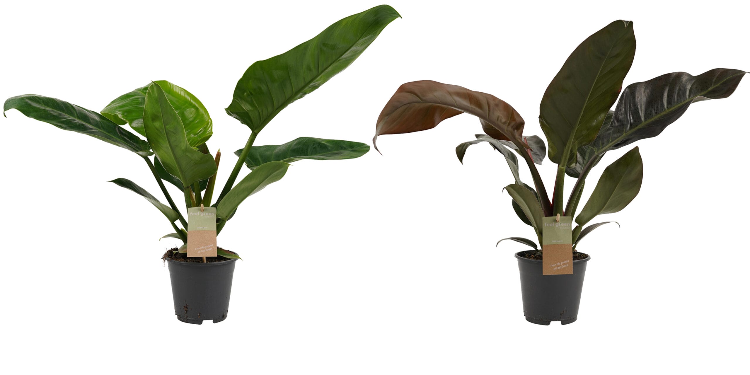 Met deze combinatie van de Philodendron Imperial Green en de Philodendron Imperial Red breng je de tropen in huis. De Philodendron Imperial is een sterk luchtzuiverende plant die opvalt door z’n prachtige en stevige bladeren.