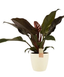 De ‘Philodendron Imperial Red’ toont keizerlijke kleuren in de zon en is een bijzondere verschijning. Deze plant wordt geleverd met moderne ELHO sierpot