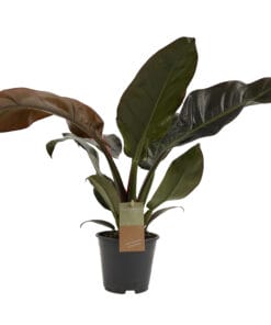 De Philodendron Imperial is een sterk luchtzuiverende plant die opvalt door z’n prachtige en stevige bladeren. Deze Philodendron is met de grote groene/rode bladeren een echte blikvanger in huis. De Philodendron komt oorspronkelijk uit de tropische regio’s van Zuid-Amerika en het Caraïbisch gebied en kent honderden varianten. De plantnaam komt van het Griekse ‘philéo’ wat ‘houden van’ betekent en ‘dendron’ dat ‘boom’ betekent! Alle Philodendrons zijn gemakkelijk te verzorgen en helpen het binnenklimaat fris en zuurstofrijk te maken.