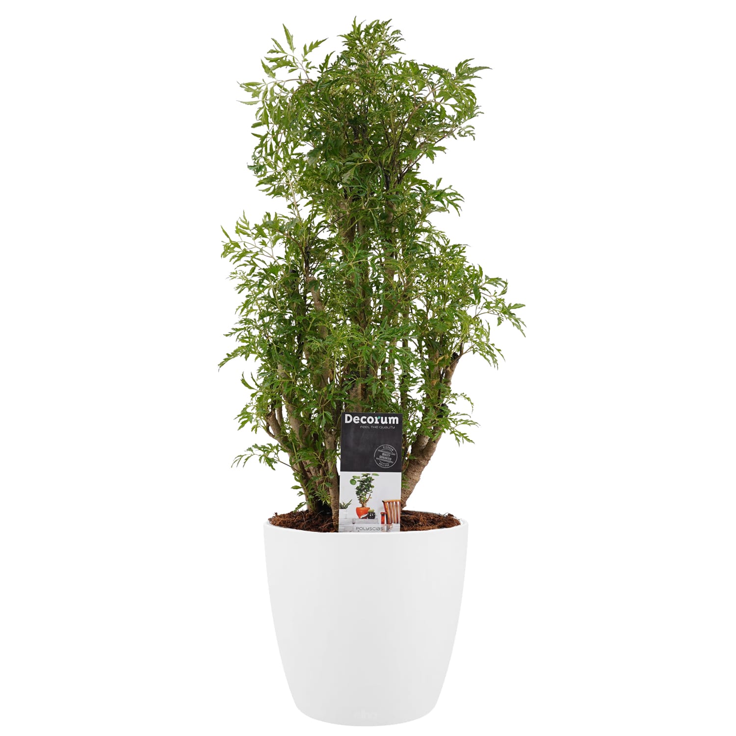Polyscias Hawaiiana Ming vertakt met Elho brussels white ↑ 50 cm ⌀ 17 cm