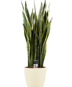 De Vrouwentong, zoals de Sanseveria, ook wordt genoemd, is klassiek, maar ook hip, stijvol en kitsch. Het is hoe dan ook een aandachttrekker. De plant is sterk en heeft zeer weinig verzorging nodig. Ook leuk dus als je geen groene vingers hebt. In de NASA clean air study is vastgesteld dat de Sansevieria giftig is voor huiskatten, maar vele gifstoffen uit de lucht zuivert. En CO2 ook ’s nachts.