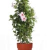 Dipladenia Sundaville – Mandevilla (Lichtroze, piramide) in witte bloempot ↑ 85 cm ⌀ 25 cm