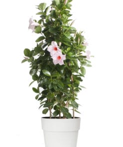 Dipladenia Sundaville – Mandevilla (Lichtroze, piramide) in witte bloempot ↑ 85 cm ⌀ 25 cm