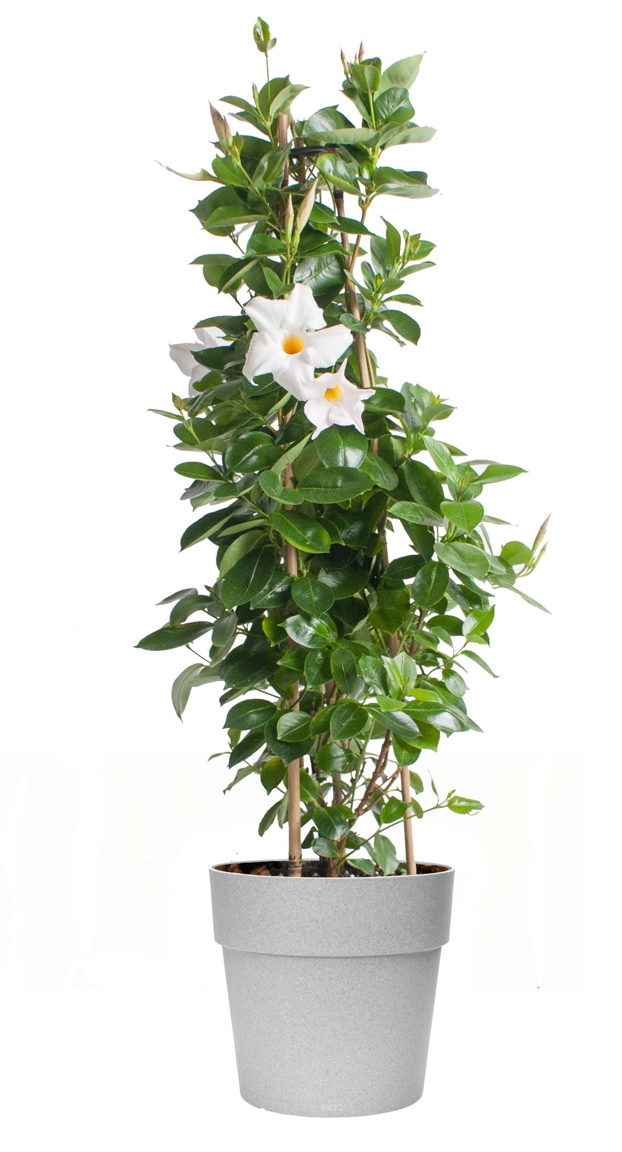 Dipladenia Sundaville – Mandevilla (wit, piramide) in grijze bloempot ↑ 85 cm ⌀ 25 cm