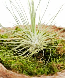 Dit wordt het nieuwe pronkstuk van jou woon-, slaap- of studeerkamer! Zo’n unieke samenstelling zie je niet vaak. In deze halve kokosnoot staat een schattig plantje, de Tillandsia Argentea. Dit plantje wordt ook wel een ‘luchtplant’ genoemd, omdat deze leeft van de luchtvochtigheid. Omdat het de luchtvochtigheid in Nederland niet zo hoog is, heeft de Tillandsia Argentea hier wel extra water nodig. Als de plant gaat bloeien komt er een stengel uit het hart van de bloem met daaraan prachtige paarse bloemen.Dit is een DIY product. De Tillandsia, de halve kokosnoot en het gedroogde mos van de foto worden geleverd en je kunt zelf losgaan om hier een mooi kunstwerk mee te creëren (zoals op de foto).
