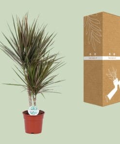 Maak kennis met de Dracaena Bicolor, ook wel bekend als de Drakenboom – de perfecte toevoeging aan jouw collectie kamerplanten! Afkomstig uit tropische regio’s, beschikt deze prachtige plant over levendige, tweekleurige bladeren die elke ruimte opfleuren. Met zijn compacte formaat en lage onderhoudsbehoeften, is hij ideaal voor drukke individuen die een vleugje natuur in hun huis of kantoor willen hebben. Breng een vleugje exotische schoonheid binnenshuis met de Dracaena Bicolor, de Drakenboom die jouw ruimte laat gedijen met stijl en charme. Shop nu en maak je leven moeiteloos groen! Om voor Dracaena te zorgen, plaats het op een plek met halfschaduw om het te beschermen tegen direct zonlicht. Geef de plant eens per week water, waarbij je ervoor zorgt dat de grond vochtig is maar niet doordrenkt. Dracaena gedijt goed in goed doorlatende grond, dus kies een grondmix met goede drainage. Bemest de plant elke twee tot drie maanden tijdens het groeiseizoen met een gebalanceerde vloeibare meststof, verdund volgens de instructies op de verpakking. Vermijd overbemesting, omdat dit schade aan de plant kan veroorzaken.Wist je dat Dracaena bicolor, ook bekend als de Regenboogplant, niet alleen een mooie decoratieve plant is, maar ook luchtzuiverende eigenschappen heeft? Het kan schadelijke giftige stoffen verwijderen en de luchtkwaliteit in je huis of kantoor verbeteren. Houd er echter rekening mee dat deze plant alleen voor decoratieve doeleinden is en niet eetbaar is. Dus, terwijl het een levendige touch aan je ruimte toevoegt, is het het beste om er niet van te proberen te snacken!De Dracaena Bicolor, ook bekend als de Drakenboom, is een populaire kamerplant met een potmaat van 17 cm.Deze plant groeit meestal tot een hoogte van ongeveer 75 cm, waardoor het een relatief compacte optie is voor binnenruimtes.De Dracaena Bicolor gedijt goed in gedeeltelijke schaduw.Een leuk feitje over de Dracaena is dat het wordt geloofd dat het luchtzuiverende eigenschappen heeft, waardoor de kwaliteit van de binnenlucht verbetert.De Dracaena Bicolor is een visueel prachtige plant, met levendige groene bladeren met gele strepen die een vleugje kleur toevoegen aan elke kamer.