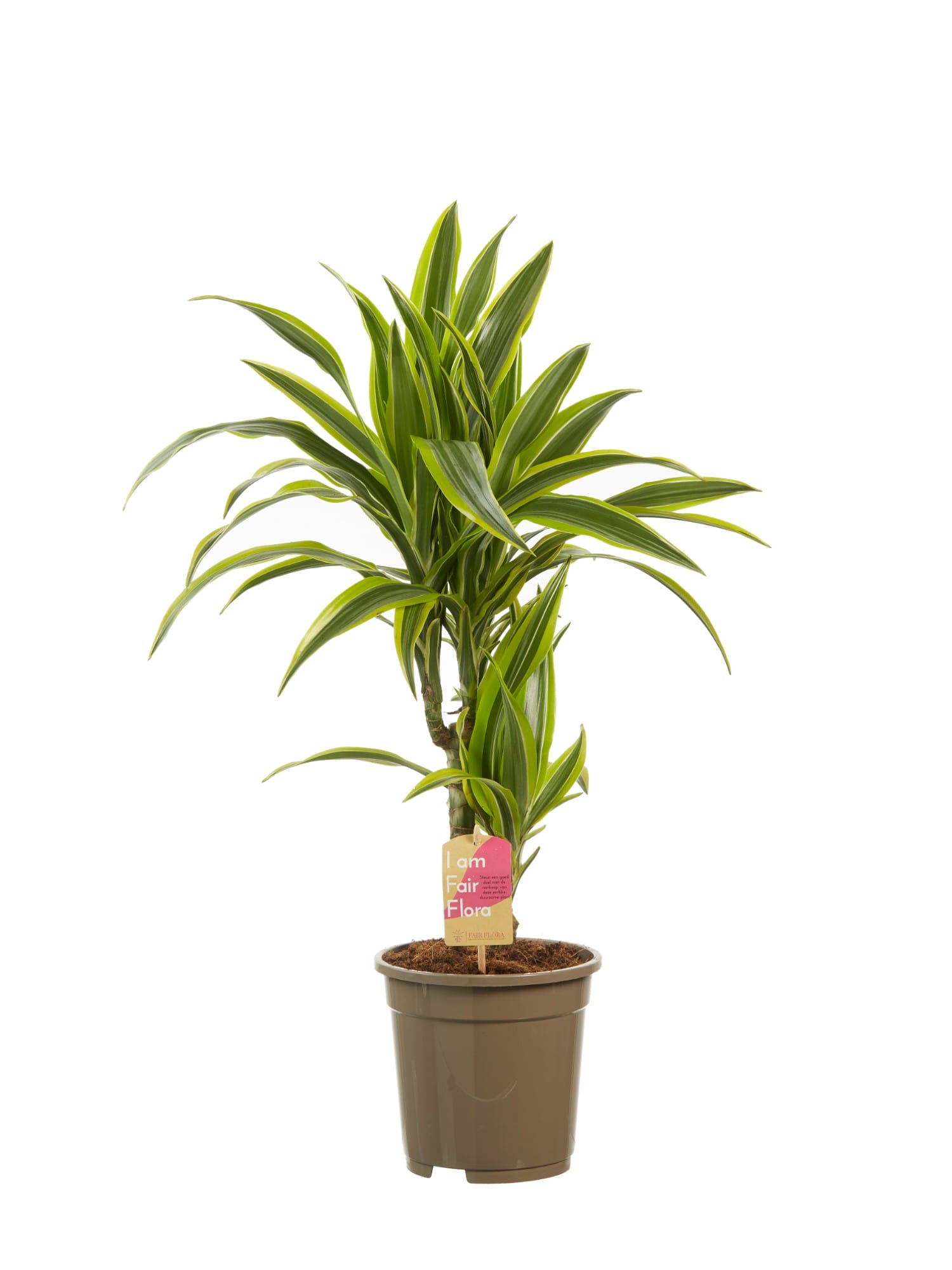 Mooie plant met twee stammen. Erg makkelijk in onderhoud en luchtzuiverend. Met Fair Flora label: eerlijk en duurzaam.