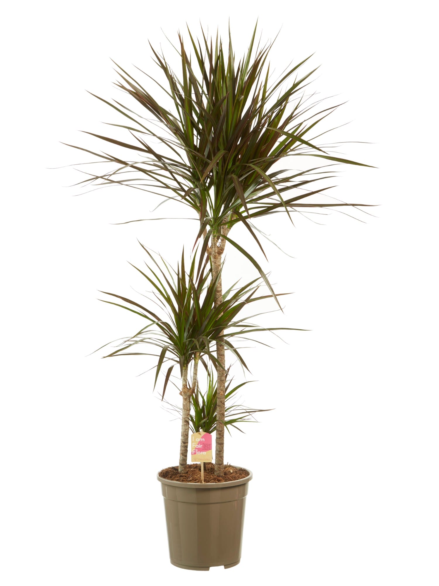 Mooie hoge plant met drie stammen. Erg makkelijk in onderhoud en luchtzuiverend. Met Fair Flora label: eerlijk en duurzaam.
