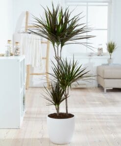 Geef snel een tropisch tintje aan je interieur met deze luchtzuiverende en makkelijk te verzorgen dracaena. De Dracaena marginata Magenta heeft mooie donkere bladeren met een lichte donkerrode gloed. Deze plant heeft 3 stammen in een pot van 24cm diameter. Er zijn wel 120 verschillende soorten Dracaena, waarvan sommige een bloedrode hars produceren. Daarom wordt hij ook wel drakenboom of drakenbloedboom genoemd.