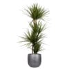 De Dracaena ‘Sunray’ heeft lange, dunne bladeren die meer geel dan groen gekleurd zijn.