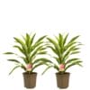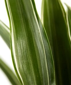 Geef snel een tropisch tintje aan je interieur met deze twee luchtzuiverende en makkelijk te verzorgen Dracaena’s. De Dracaena deremensis Warneckei heeft mooie brede bladeren met een subtiele witte streep. Deze plant heeft 2 stammen in een pot van 17cm diameter. Er zijn wel 120 verschillende soorten Dracaena, waarvan sommige een bloedrode hars produceren. Daarom wordt hij ook wel drakenboom of drakenbloedboom genoemd. “Deremensis” is een synonym voor de soortnaam “Fragrans”. Deze naam heeft hij omdat er heel sterk geurende bloemen in kunnen komen. Thuis gebeurt dit trouwens bijna nooit!