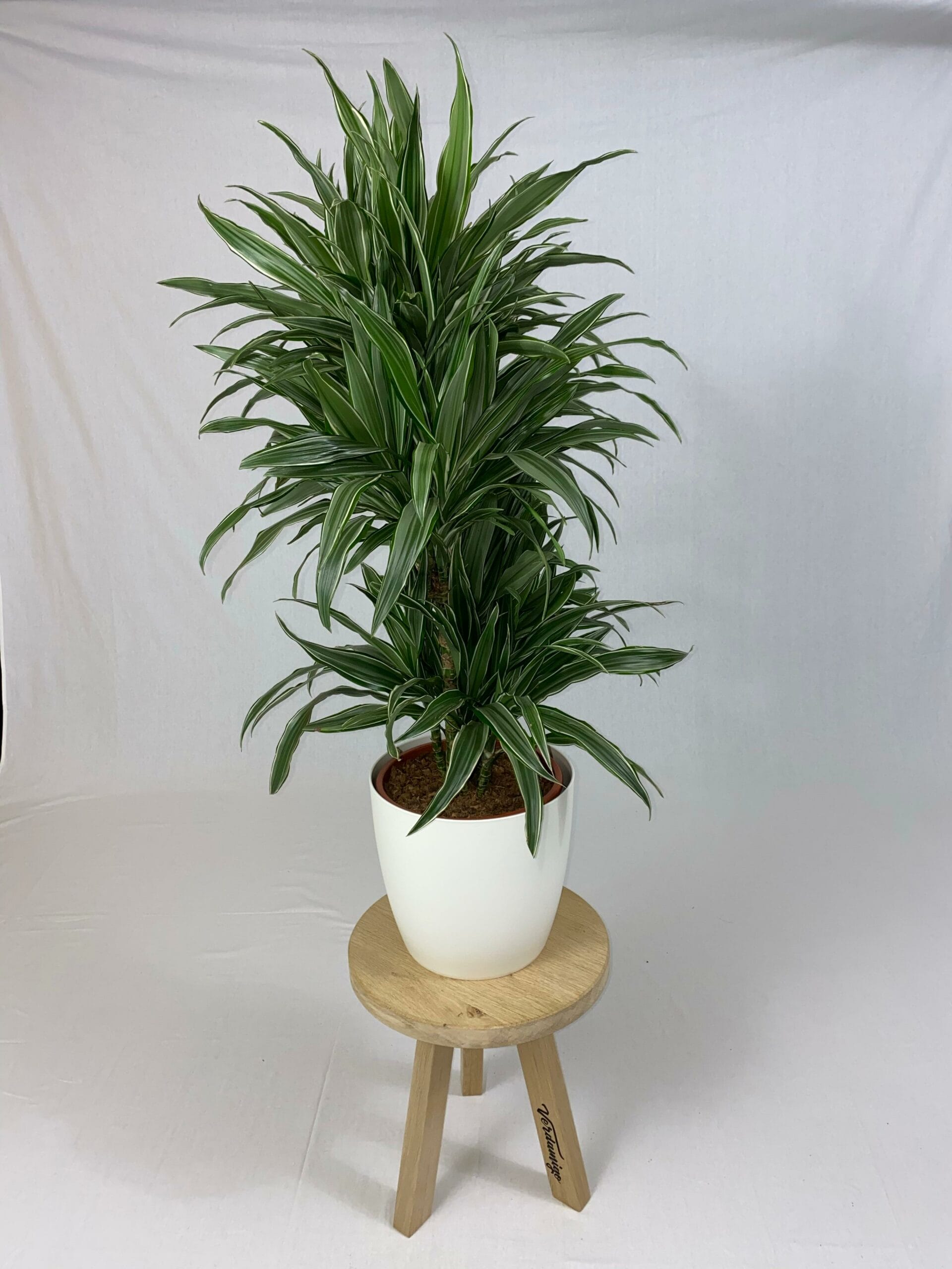 Drakenboom, Dracaena Warneckei met ElhoBrussels 30 wit ↑ 120 cm ⌀ 27 cm