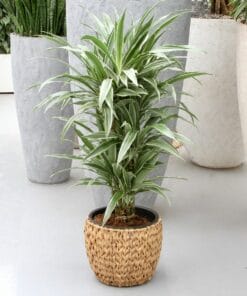 Geef snel een tropisch tintje aan je interieur met deze luchtzuiverende en makkelijk te verzorgen dracaena. De Dracaena deremensis Warneckei heeft mooie brede groene bladeren met een subtiele witte streep. Er zijn wel 120 verschillende soorten Dracaena, waarvan sommige een bloedrode hars produceren. Daarom wordt hij ook wel drakenboom of drakenbloedboom genoemd. “Deremensis” is een synonym voor de soortnaam “Fragrans”. Deze naam heeft hij omdat er heel sterk geurende bloemen in kunnen komen. Thuis gebeurt dit trouwens bijna nooit!. Deze dracaena is ook een van de planten die de lucht in huis kan zuiveren! Dat betekent dat hij niet alleen CO2 omzet in zuurstof, maar dat hij ook allerlei schadelijke stoffen uit de lucht haalt. Perfect voor woningen in de stad en voor huizen met weinig ventilatie!