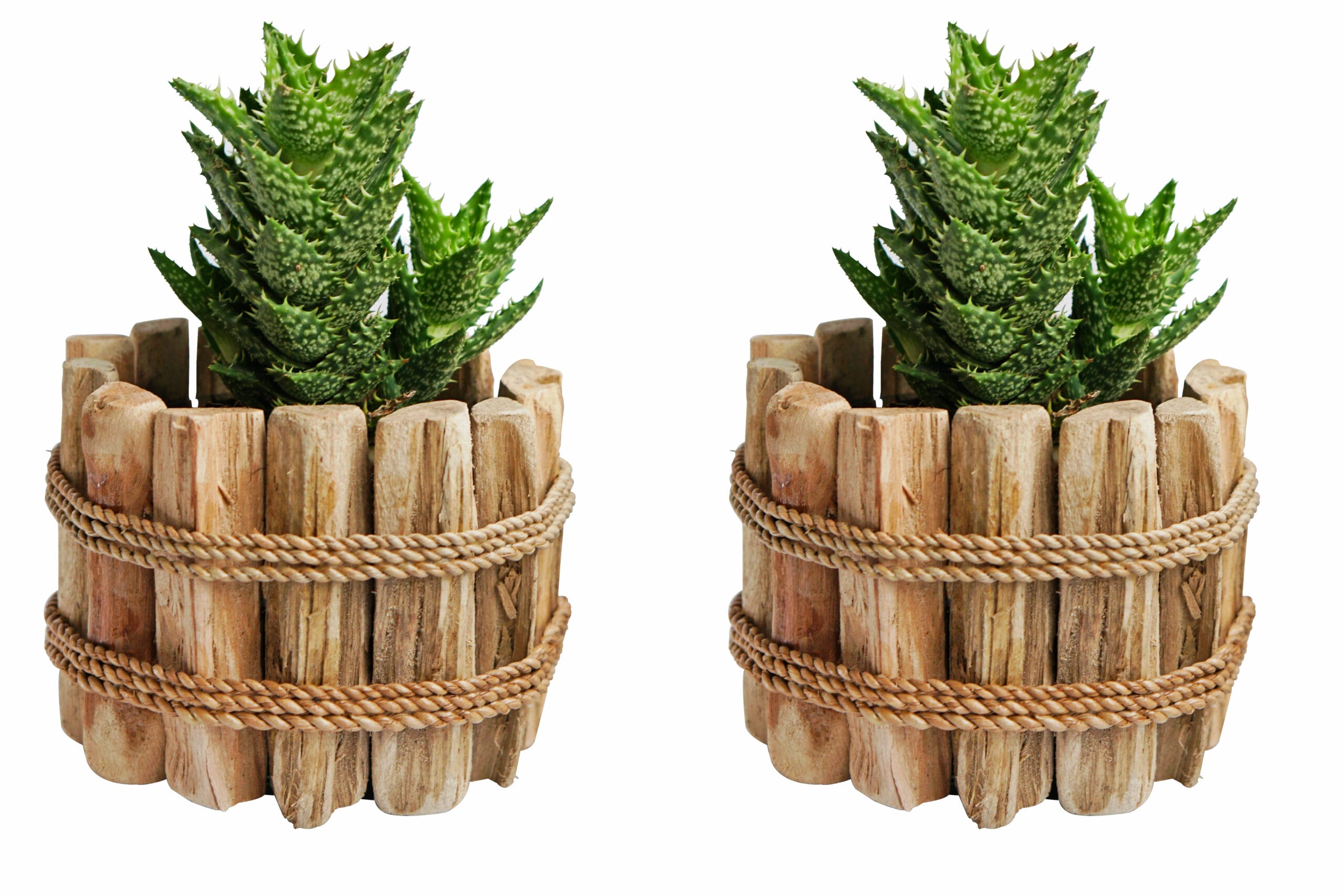 Duo Aloë Squarosa In Houten Driftwood Pot ↑ 15 cm ⌀ 15 cm
