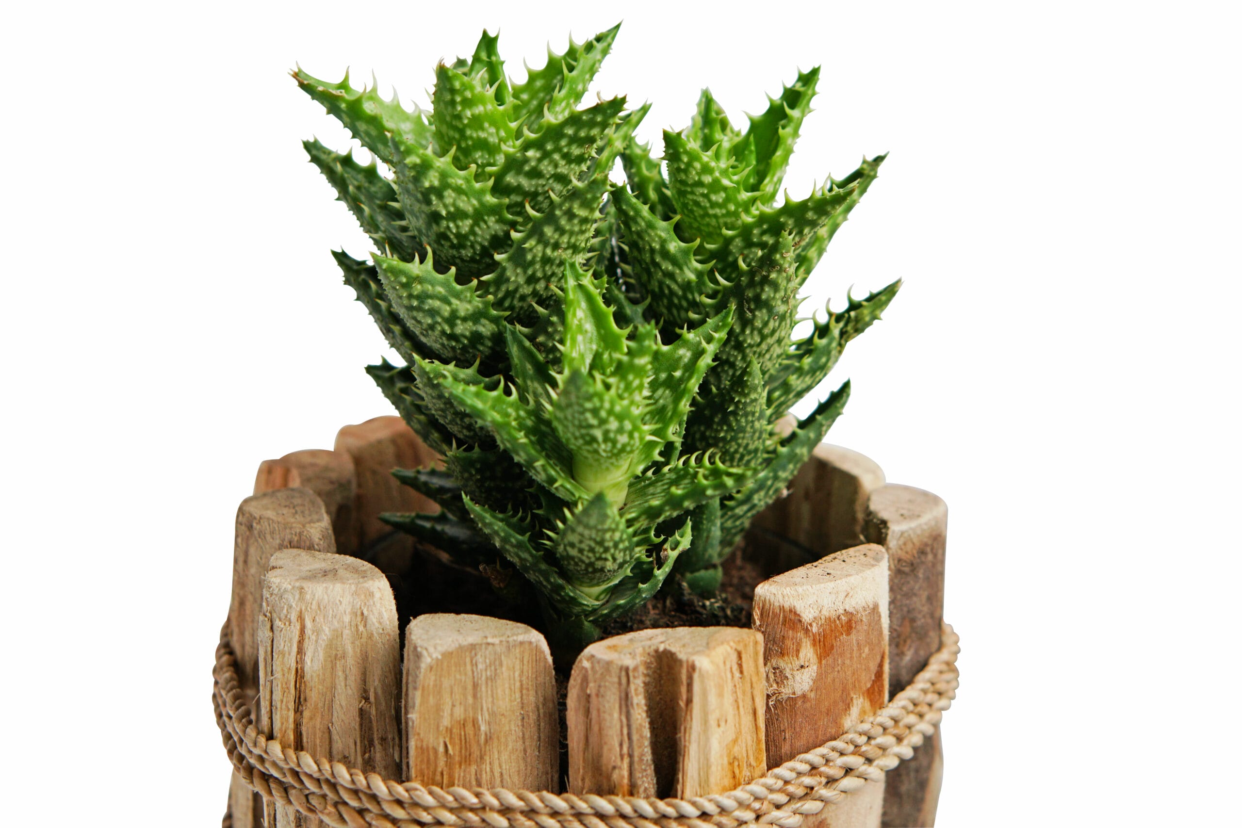 Deze plant schittert als een groene parel in een prachtige houten pot van Driftwood. Het is een sierlijke, robuuste plant die onder de succelenten valt. De Aloë Squarrosa is oorspronkelijk afkomstig uit Afrika (van Zuid-Afrika tot in de tropische gebieden van Afrika). Deze plant is krachtig en lijkt met de mooie bladrozetten op een zeester. De Aloë Squarosa slaat water op in de bladeren. Deze groene parel staat perfect op tafel of in de vensterbank. Het is een echte blikvanger. Laat de plant wel rustig wennen aan schril zonlicht. In een donker hoekje zullen de bladeren slap worden en verkleuren.