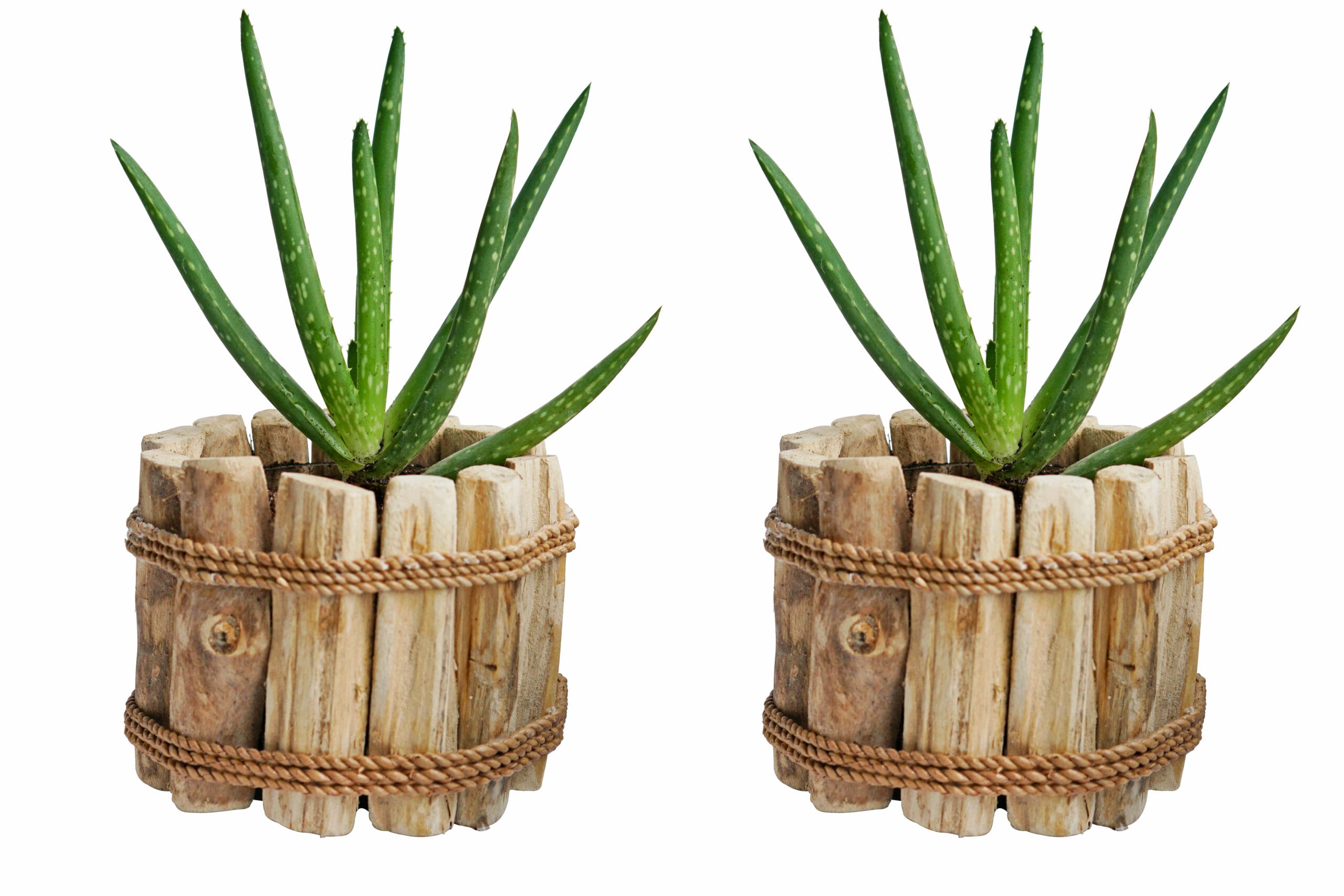 Duo Aloë Vera in Houten Driftwood Pot ↑ 25 cm ⌀ 15 cm