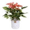 Duo Anthurium “Pink Champion” in keramiek Anna (wit) ↑ 40 cm ⌀ 12
