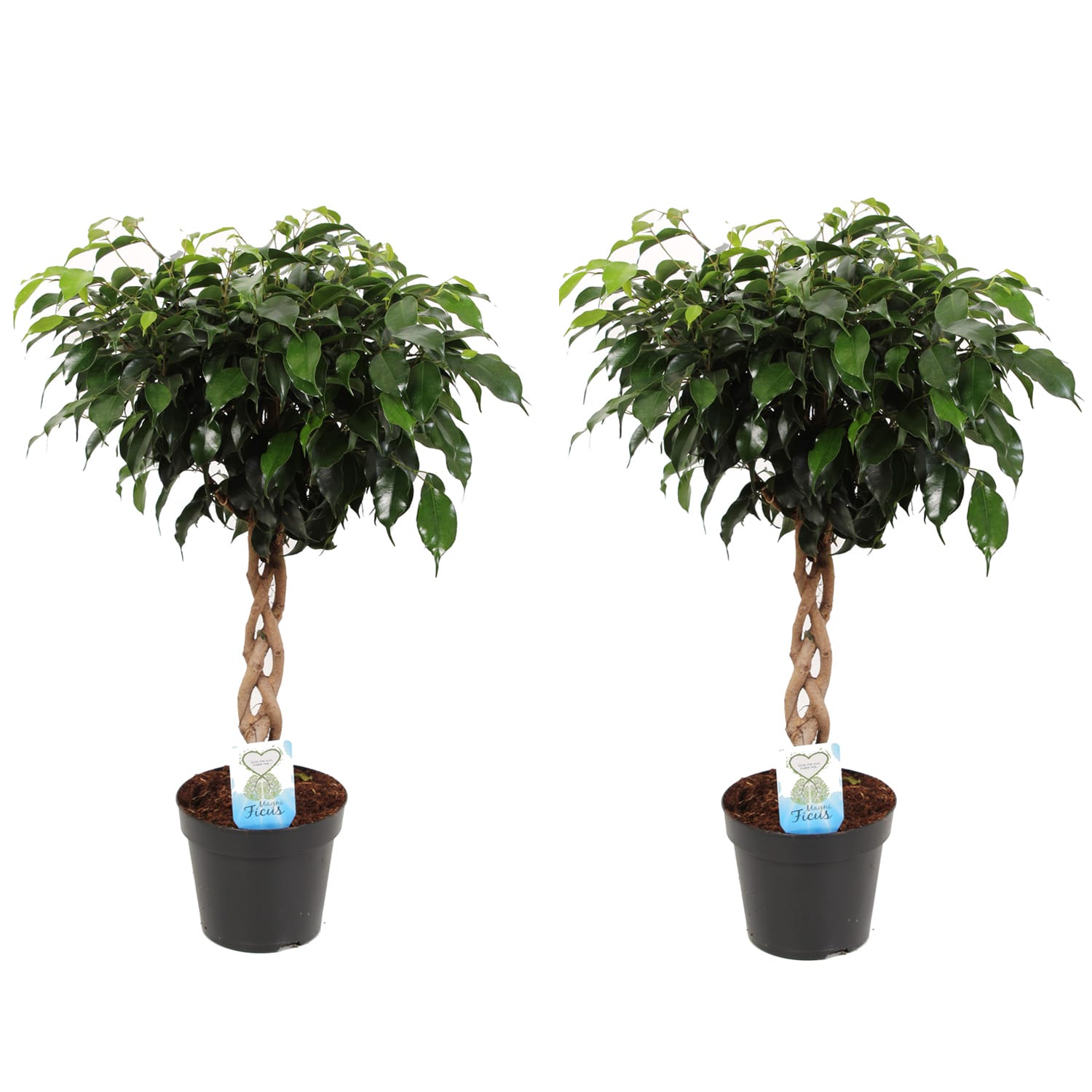 Duo Ficus Benjamina met gevlochten stam – 2 stuks ↑ 65 cm ⌀ 17 cm