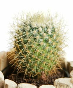 De Mammillaria Pringlei komt oorspronkelijk uit Mexico en is een bolcactus met een mooie groene kleur. Deze cactus heeft geen ribben maar kleine bolletjes waar witte naalden uit groeien. Als de cactus gaat bloeien krijgt hij donker roze bloemen. De cactus zit in een prachtige houten pot van Driftwood. Het is een natuurproduct, dus alle potten zijn uniek. De Mammillaria Pringlei wordt vaak als kamerplant gebruikt en heeft weinig verzorging nodig. Deze cactus wordt niet groot en heeft dus maar een klein potje nodig. Dit is de ideale plant voor mensen zonder groene vingers! Deze plant heeft geen speciale behandeling nodig. Een zonnig plekje en af en toe wat water is al genoeg.