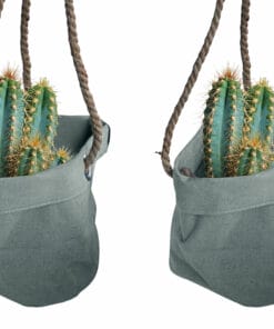 Deze mooie blauwgroene zuilcactus komt voor in de semi tropische gebieden van Brazilië. De kleuren van deze cactus maken hem echt uniek! Als de cactus ouder wordt, wordt de blauwe kleur veel intenser. De cactus heeft goudgele stekels en bloeit vooral ’s nachts. Als de Pilosocereus Azureus groot genoeg is krijgt hij grote witte bloemen. De Pilosocereus Azureus wordt geleverd in een hangende plantbag. Een textiele plantbag is helemaal van nu, een gave aanvulling op jouw interieur. De potten zijn natuurproducten, elke pot is anders. Dit geeft het geheel echt een unieke uitstraling bij jou thuis!