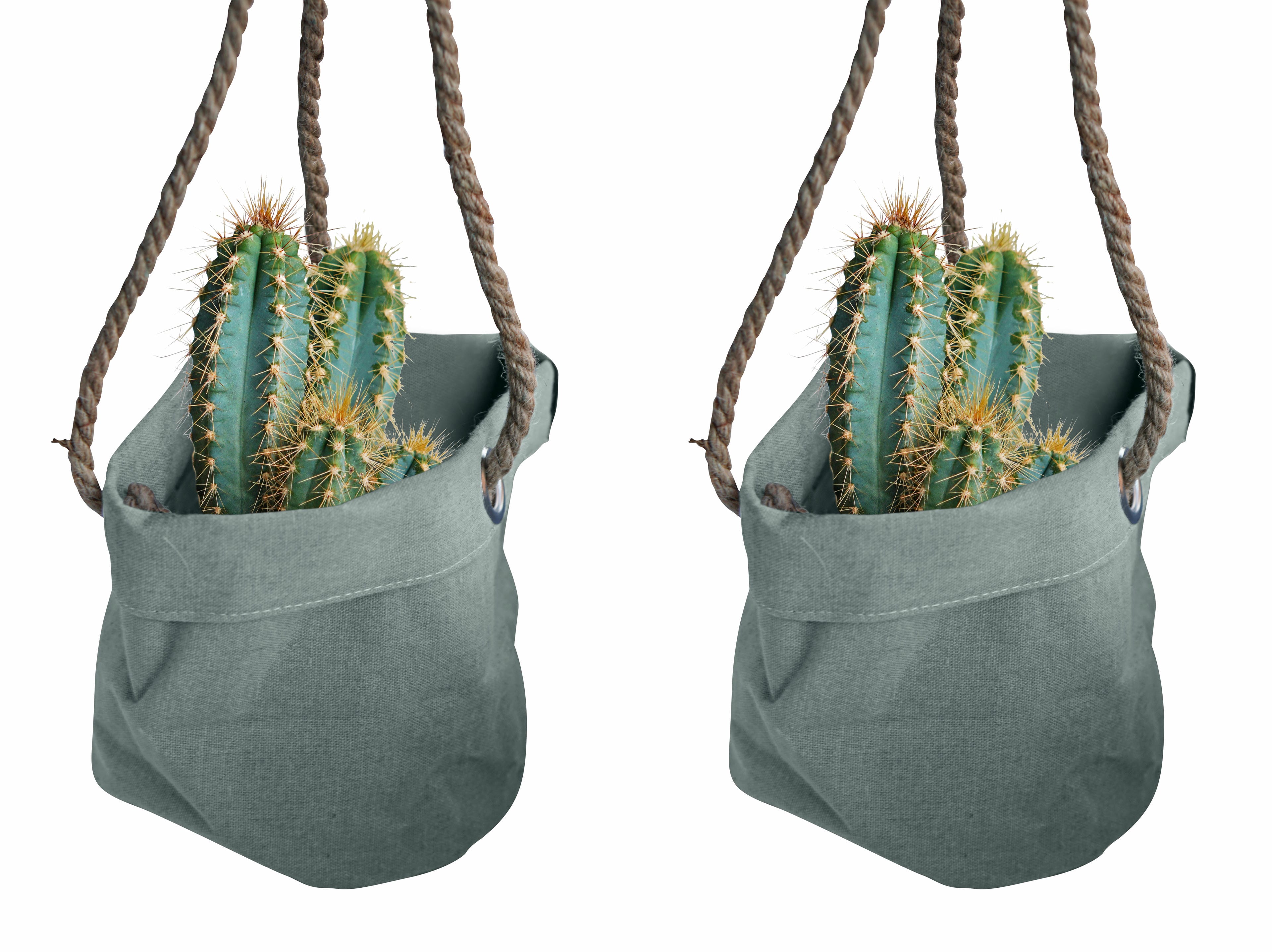 Duo Pilosocereus Azureus in Hangende Linnen Plantbag ↑ 15 cm ⌀ 15 cm