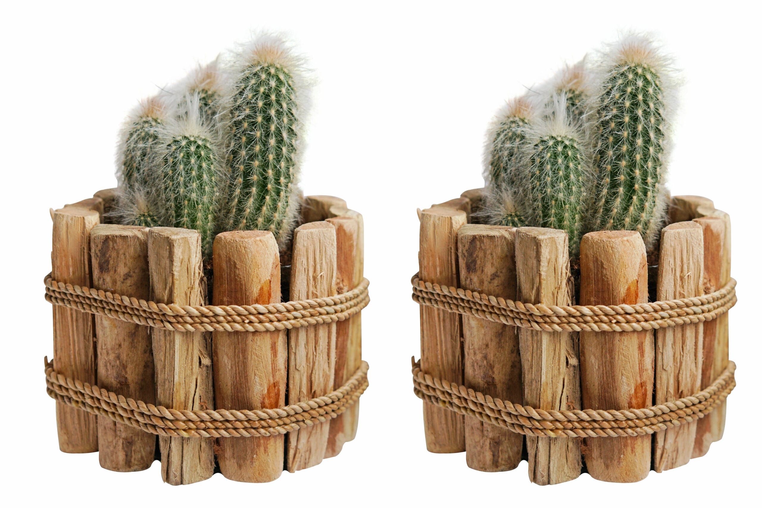 Duo Pseudoespostoa Melanostele in Houten Driftwood Pot ↑ 15 cm ⌀ 15 cm