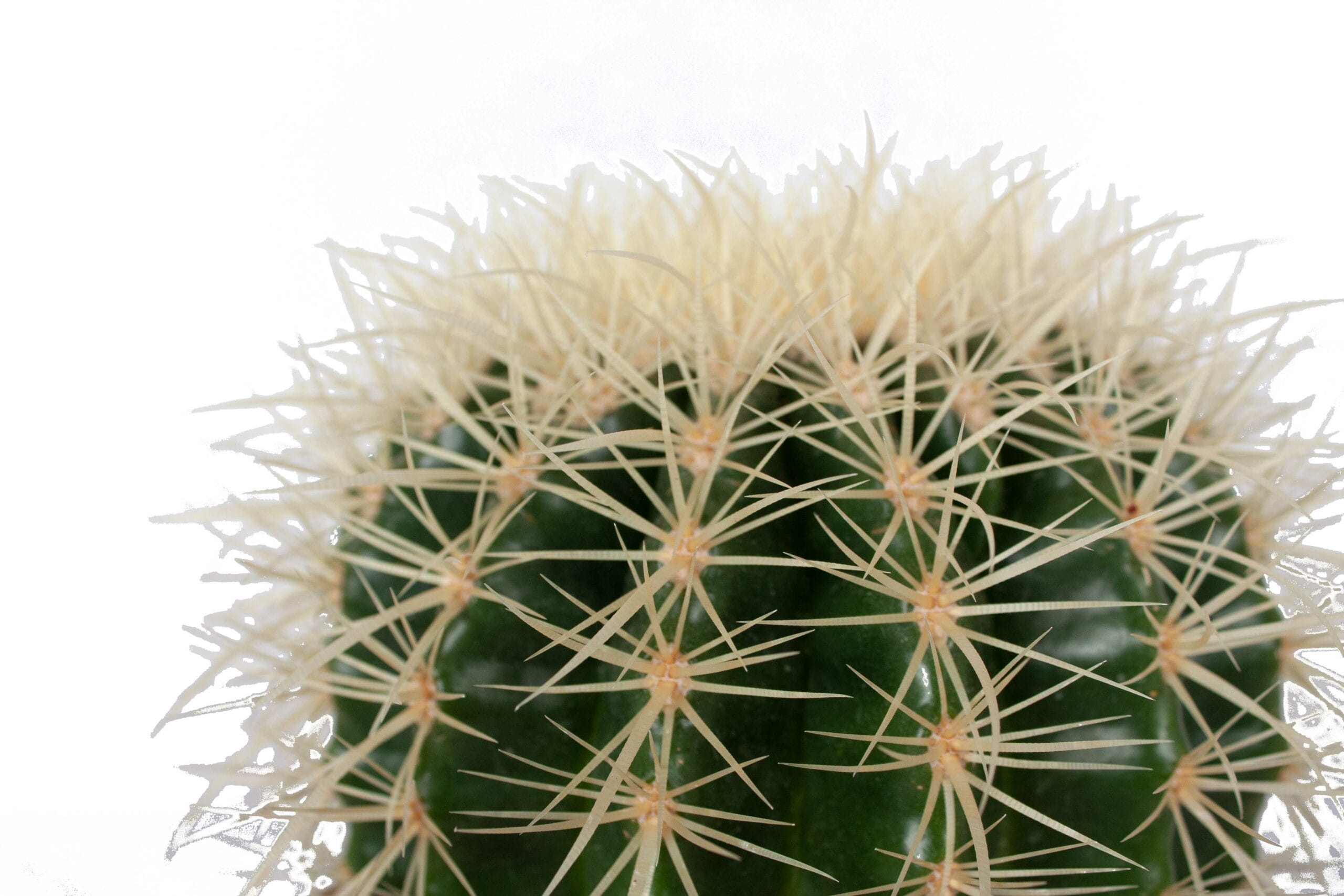 De grote gele doornen zijn even onaangenaam als ze eruitzien: vlijmscherp en keihard. Dit is geen cactus om zonder handschoenen aan te pakken.