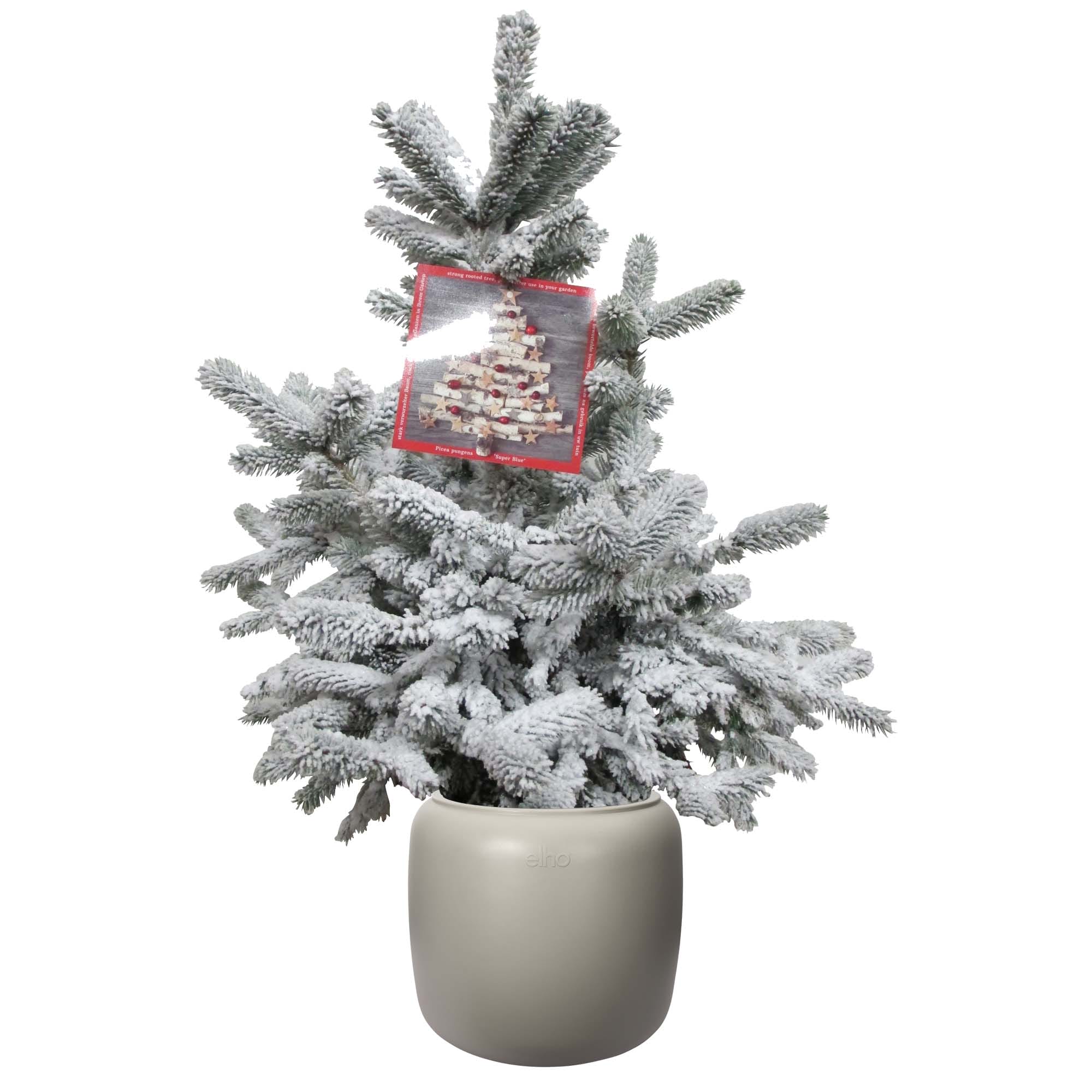 Deze pot in de kleur Balanced Beige wordt geleverd met een Picea met sneeuw. Een leuk alternatief voor een ‘echte’ kerstboom. Voor buiten of binnen.