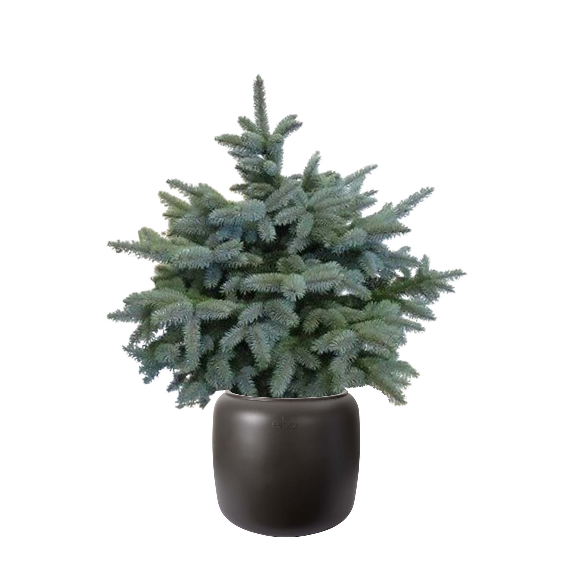 ELHO ® Pure Beads Small Ø 40 (Walnootbruin) met Picea pungens “Super Blue” ↑ 95 cm ⌀ 30 cm