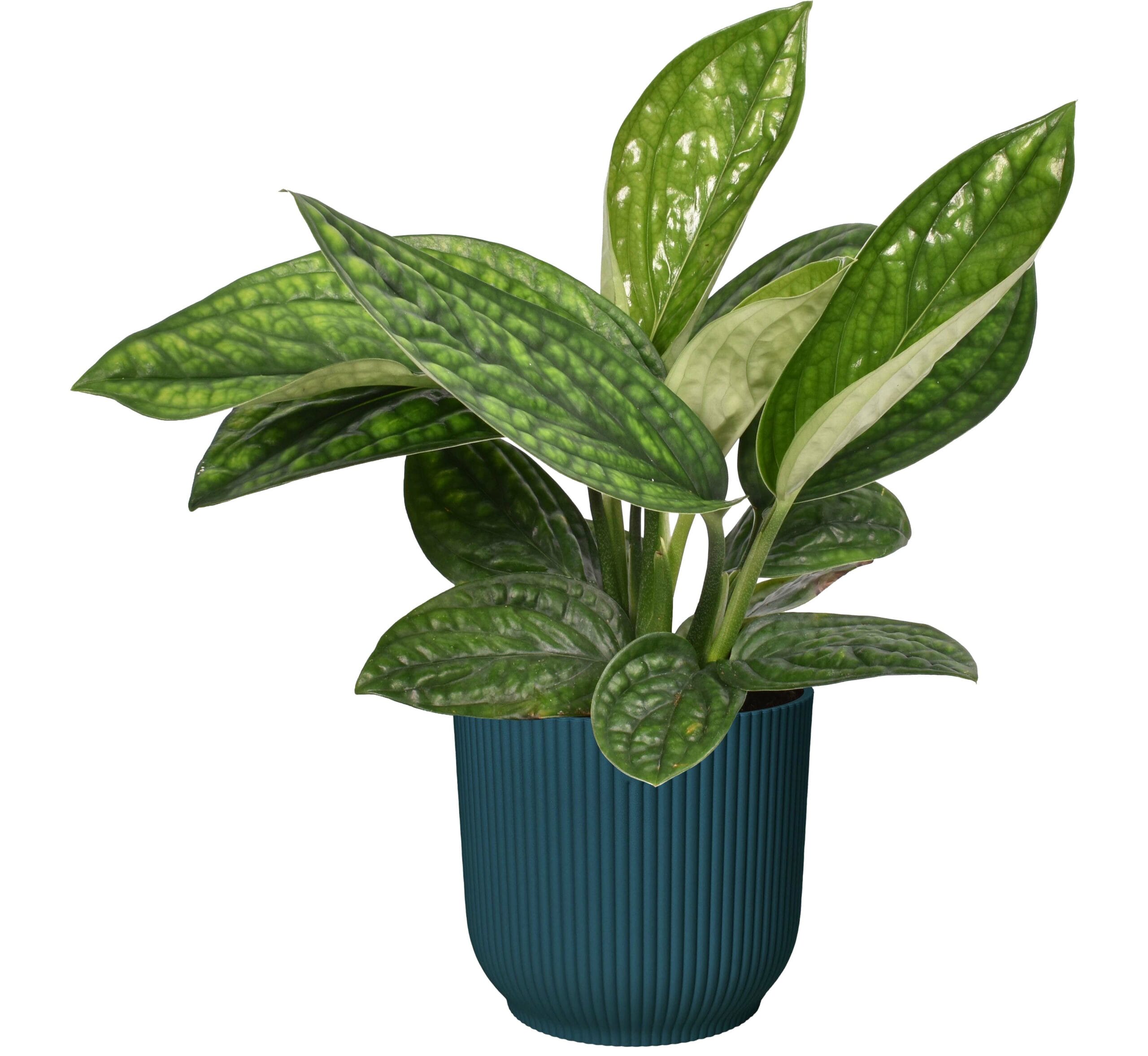 Scindapsus pinnatum ‘Marble Planet’ in Vibes Fold Rond (diepblauw) ↑ 30 cm ⌀ 14