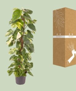 Maak kennis met de Epipremnum Pinnatum, ook wel bekend als de Goudpalm, een prachtige kamerplant met een levendige oorsprong. Van nature afkomstig uit de bossen van Zuidoost-Azië, heeft deze weelderige schoonheid hartvormige bladeren die gracieus neerdalen en een vleugje natuurlijke elegantie toevoegen aan elke binnenruimte. De gouden tekening brengt warmte en frisheid met zich mee, waardoor het een perfecte keuze is voor plantenliefhebbers en beginners. Makkelijk te onderhouden en bekend om zijn luchtzuiverende eigenschappen, is deze kamerplant een must-have voor wie de natuur naar binnen wil brengen in hun huis of kantoor. Epipremnum, in de volksmond bekend als Gouden pothos, gedijt goed op een halfschaduwrijke plek en moet eens per week bewaterd worden. Het geeft de voorkeur aan goed doorlatende grond met veel organisch materiaal. Het bemesten van de plant moet maandelijks tijdens het groeiseizoen gebeuren, met behulp van een uitgebalanceerde kamerplantenmeststof. Vermijd overbemesting, want dit kan leiden tot wortelverbranding. Veeg regelmatig de bladeren af om ze stofvrij te houden en een goede fotosynthese te waarborgen. Met deze verzorgingsinstructies zal jouw Epipremnum gedijen en een mooie toevoeging blijven aan jouw binnenruimte.Wist je dat Epipremnum Pinnatum, algemeen bekend als Devil’s Ivy, een ongelooflijk veerkrachtige en onderhoudsvriendelijke kamerplant is? Zijn vermogen om te gedijen in verschillende lichtomstandigheden en verwaarlozing te verdragen, maakt het een perfecte keuze voor beginners in de tuinbouw. Het is echter belangrijk om te onthouden dat Devil’s Ivy strikt voor decoratieve doeleinden is en niet bedoeld is om te consumeren. Dus bewonder zijn weelderige en hangende bladeren, maar weersta de verleiding om een hapje te nemen!- Epipremnum Pinnatum, ook wel bekend als Gouden Pothos, is een populaire kamerplant die gedijt in een potformaat van 24 cm.- Deze plant kan groeien tot ongeveer 120 cm in hoogte, waardoor het een geweldige keuze is om groen toe te voegen aan elke binnenruimte.- Epipremnum Pinnatum geeft de voorkeur aan een plek in gedeeltelijk beschaduwde gebieden met indirect zonlicht.- Een leuk feit over Epipremnum Pinnatum is dat het een natuurlijke luchtzuiveraar is, die giftige stoffen uit de lucht verwijdert en de kwaliteit van de binnenlucht verbetert.- De glanzende, hartvormige bladeren en hangende wijnstokken van deze plant maken het een aantrekkelijke toevoeging aan elk huis of kantoordecor.