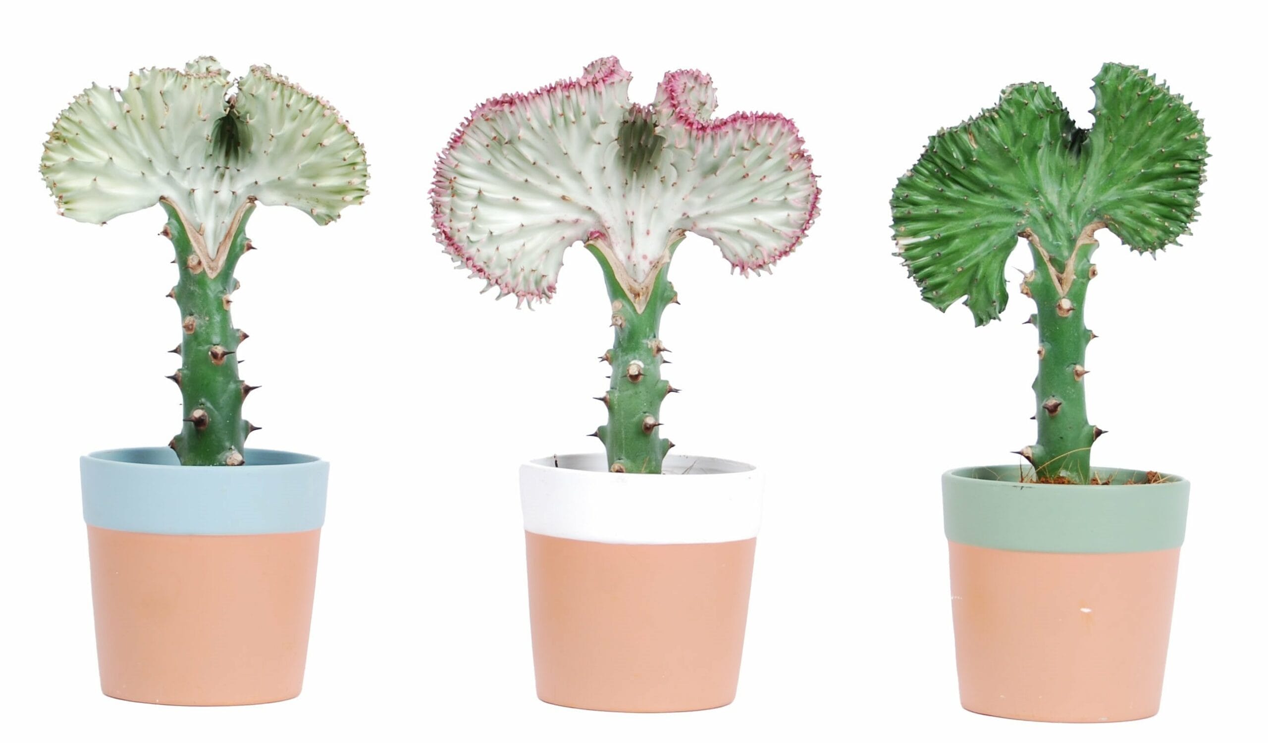 Euphorbia lactea ‘Cristata’ in Romy keramiek – 3 stuks ↑ 30 cm ⌀ 11 cm