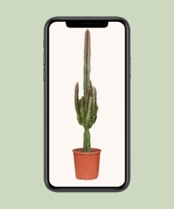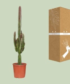 Ik introduceer de Euphorbia trigona Rubra, een prachtige kamerplant met levendige tinten diep rood. Ook bekend als de Poinsettia, komt deze betoverende plant oorspronkelijk uit de tropische regio’s van Afrika. Met zijn slanke, puntige stelen en dikke, sappige bladeren brengt hij een vleugje exotische schoonheid in elke ruimte. De Euphorbia trigona Rubra gedijt binnenshuis en is een ideale aanvulling voor in huis of op kantoor. Zijn lage onderhoudsbehoefte en vermogen om de lucht te zuiveren maken het een perfecte keuze voor liefhebbers van planten van alle niveaus. Verhoog je binnenplantenspel met deze opvallende schoonheid. Euphorbia, een plant die houdt van zonlicht, gedijt goed op heldere plekken. Geef het eens in de 8-10 dagen water en zorg ervoor dat de bodem goed doorlatend is. Het ideale bodemtype voor de Poinsettia is zanderig en lemig. Bemest de plant elke 4-6 weken tijdens de lente en zomer met een evenwichtige vloeibare meststof. Wees voorzichtig om niet te veel te bemesten, dit kan de plant beschadigen. Vermijd daarnaast bemesten tijdens de wintermaanden. Regelmatige verzorging en aandacht zullen ervoor zorgen dat jouw Euphorbia prachtig bloeit en gezond blijft.Wist je dat de Euphorbia trigona Rubra, algemeen bekend als de Afrikaanse Melkboom, niet alleen een opvallende kamerplant is, maar ook een uitstekende toevoeging! Zijn levendige rode stelen en weelderige groene bladeren maken het zeer gewild bij plantenliefhebbers. Het is echter belangrijk op te merken dat deze plant strikt voor decoratieve doeleinden is en niet eetbaar. Dus, hoewel het misschien je aandacht trekt, zorg ervoor dat het buiten bereik blijft van nieuwsgierige smaaktesters die op zoek zijn naar een nieuw culinair avontuur!De Euphorbia trigona Rubra, algemeen bekend als Poinsettia, heeft een potmaat van 17 cm. Deze mooie plant kan tot ongeveer 70 cm hoog worden, waardoor het een geweldige toevoeging is aan elke binnenruimte. Poinsettia’s gedijen in de volle zon, dus zorg ervoor dat je ze op een plek plaatst waar ze gedurende de dag voldoende zonlicht kunnen ontvangen. Leuk feitje: de Euphorbia-familie staat bekend om zijn unieke eigenschap om een melkachtige sap te produceren dat giftig kan zijn bij inname, dus houd het buiten bereik van kinderen en huisdieren. Met zijn levendige rode, roze of witte schutbladeren is de Poinsettia een populaire keuze voor feestdecoraties en voegt het een feestelijk tintje toe aan elke ruimte.