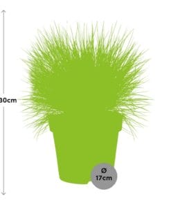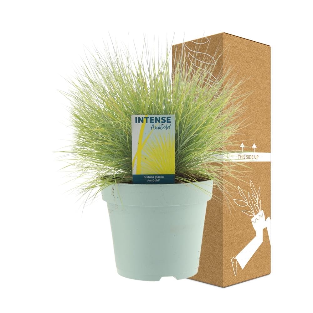 Kennismaken met Festuca Glauca AmiGold, de ultieme buitenplant. Ook wel bekend als Blauw Schapengras, voegt het een betoverend tintje toe aan elke tuin of landscaping project. Met zijn opvallende blauwgroene bladeren zal dit siergras zeker indruk maken. Afkomstig uit de bergen van Europa, gedijt Festuca Glauca AmiGold in verschillende groeiomstandigheden, van volle zon tot gedeeltelijke schaduw. Makkelijk in onderhoud en droogtetolerant, het is een must-have voor elke tuinliefhebber. Maak je klaar om de schoonheid van je buitenruimte te versterken met Festuca Glauca AmiGold, de perfecte combinatie van stijl en veerkracht. Festuca, algemeen bekend als Blauw schapengras, gedijt op zonnige plekken met minimaal water geven. Het geeft de voorkeur aan goed doorlatende grond, rijk aan organisch materiaal. Om de groei te bevorderen, bemest de plant één keer per jaar in het vroege voorjaar met een langzaam werkende, gebalanceerde meststof. Vermijd overbemesting, omdat dit kan leiden tot overmatige groei en zwakkere bladeren. Onthoud dat Blauw schapengras een makkelijk te onderhouden plant is die een vleugje schoonheid toevoegt aan elke tuin of landschap.Wist je dat Festuca Glauca AmiGold, ook wel bekend als Blauw Schapengras, een populaire siergras is voor tuinen en landschapsontwerp? Het levendige blauwgroene blad voegt een opvallende touch toe aan elk landschapsontwerp. Het is echter belangrijk om te weten dat dit prachtige gras puur voor decoratie is en niet bedoeld is voor consumptie. Dus terwijl je kunt genieten van de schoonheid en textuur ervan, is het het beste om het weg te houden van je bord en het te laten gedijen als een charmante toevoeging aan je tuin!- Festuca Glauca AmiGold is een populaire plant met een potmaat van 17 cm.- Deze plant groeit typisch tot een hoogte van ongeveer 30 cm.- Festuca Glauca AmiGold staat ook bekend als Blue Fescue.- Deze plant gedijt goed in de volle zon, waardoor het perfect is voor een plekje in de tuin dat veel zonlicht ontvangt.- Leuk feitje: Festuca Glauca AmiGold staat bekend om zijn prachtige blauwe bladeren, die een unieke en levendige touch aan elke tuin of landschap toevoegen.