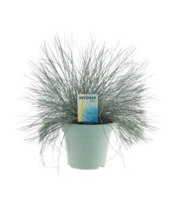 Stel de Festuca Glauca Intense Blue voor, ook wel bekend als Blauw Schapengras. Dit prachtige buitenplantje heeft intense blauwe bladeren. Deze onderhoudsarme en robuuste grassoort komt oorspronkelijk uit de rotsachtige bergen van Europa en voegt natuurlijke charme toe aan elke tuin of landschap. Met zijn compacte groei en unieke kleur zorgt Festuca Glauca Intense Blue voor een verbluffend visueel contrast en textuur. Deze veelzijdige plant is bestand tegen droogte en gedijt in volle zon, waardoor hij perfect is voor borders, rotstuinen en bloembakken. Voeg een vleugje intens blauw toe aan je buitenruimte met Festuca Glauca Intense Blue, de ultieme keuze voor elke tuinliefhebber. Festuca, algemeen bekend als Blauw schapengras, gedijt goed op zonnige locaties en heeft weinig water nodig. Het groeit het beste in goed doorlatende grond met een zanderige of leemachtige textuur. Voor optimale groei wordt aanbevolen om Blauw schapengras een- of tweemaal per jaar te bemesten, in het voorjaar en de herfst, met een gebalanceerde langzaam vrijkomende meststof. Overbemesting kan leiden tot overmatige groei en verminderde ornamentale waarde, dus is het belangrijk om de aanbevolen dosering te volgen. Regelmatig verwijderen van dode of verwelkte bladeren helpt bij het behouden van de algehele gezondheid en uitstraling van de plant.Leuke feit: Festuca Glauca Intense Blue, met zijn levendige blauwgroene bladeren, creëert een opvallende visuele aantrekkingskracht in tuinen en landschappen. Dit siergras is een onderhoudsarme en droogtetolerante optie, waardoor het perfect is voor drukke tuiniers. Het is echter belangrijk op te merken dat hoewel Festuca Glauca Intense Blue schoonheid toevoegt aan uw omgeving, het puur een decoratieve plant is en niet gegeten moet worden voor culinaire doeleinden. Dus, hoewel het je oog kan vangen, is het het beste om vanaf een afstand van dit heerlijke gras te genieten.- Festuca Glauca Intense Blue is een populaire siergrasplant die verkrijgbaar is in een pot van 17 cm grootte.- Deze variant van Festuca Glauca Intense Blue groeit doorgaans tot ongeveer 40 cm hoog.- Festuca Glauca Intense Blue wordt ook vaak Blauw Schapengras genoemd.- Deze plant gedijt goed in de volle zon en is daarom een perfecte keuze voor tuinen met een zonnige plek.- Leuk feitje: Festuca Glauca Intense Blue staat bekend om zijn opvallende zilverblauwe bladeren, die een levendige kleurtoon toevoegen aan elk landschap.
