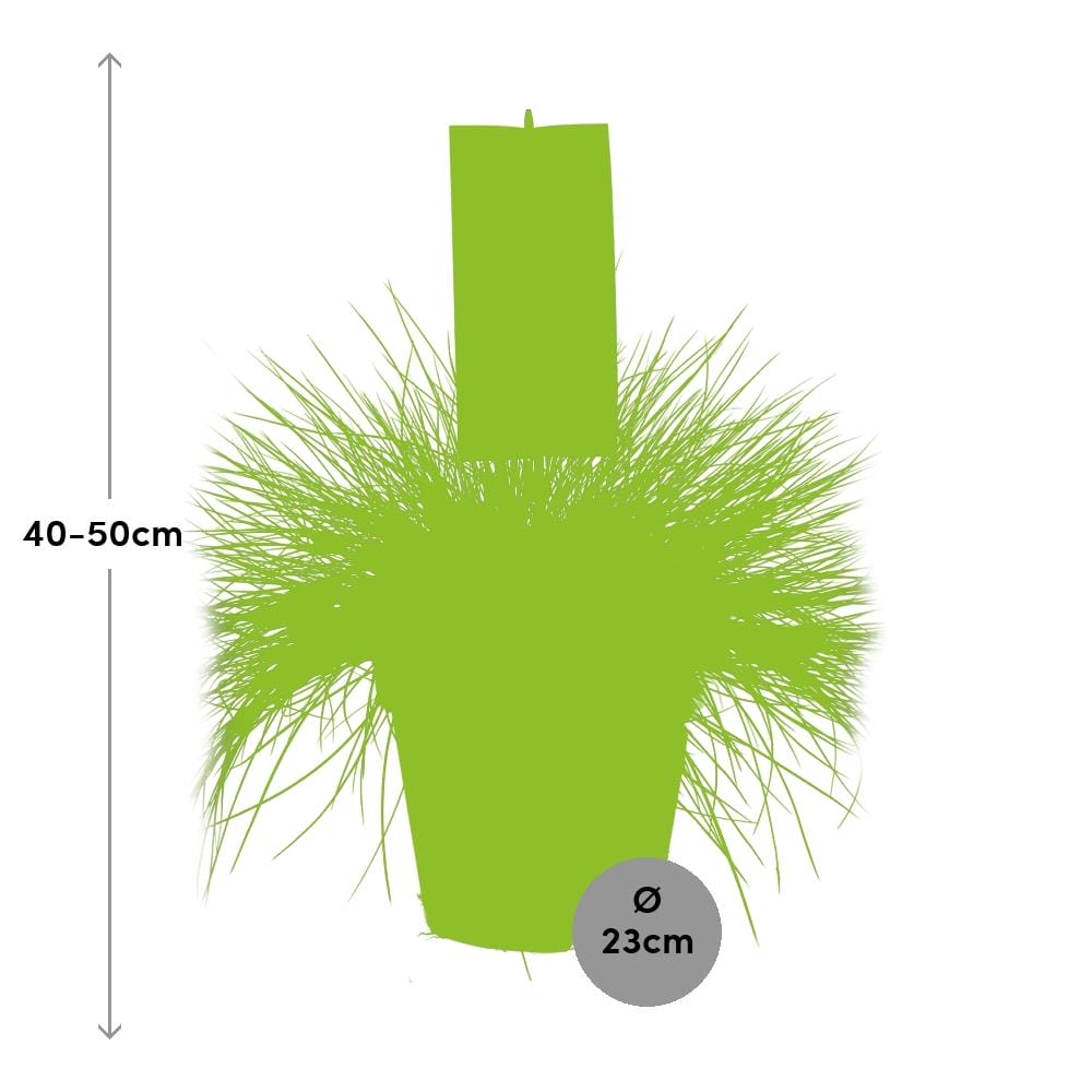 Op zoek naar een prachtige plant voor buiten? Zoek niet verder dan Festuca Glauca Intense Blue, ook bekend als Blauw Schapengras. Deze indrukwekkende plant pronkt met intense blauwe bladeren en voegt een vleugje kleur toe aan elke tuin of landschap. Met zijn compacte en polvormende groeigewoonte vereist het minimale onderhoud en gedijt het in de volle zon. Festuca Glauca Intense Blue is perfect voor borders, rotstuinen of als een opvallend kenmerk. Verfraai vandaag nog uw buitenruimte met deze betoverende en veelzijdige plant. Festuca, algemeen bekend als Blauw Schapengras, gedijt goed op een zonnige plek en heeft minimaal water nodig. Het geeft de voorkeur aan goed doorlatende grond, dus het planten ervan in zanderige of leemachtige grond wordt aanbevolen. Wat betreft bemesting, is het het beste om in het vroege voorjaar een langzaamwerkende meststof eenmaal per jaar toe te passen. Overbemesting kan leiden tot slechte groei, dus matigheid is belangrijk. Met deze verzorgingsrichtlijnen zal jouw Festuca gedijen en een aantrekkelijke blauwgroene accent aan jouw landschap geven.Wist je dat Festuca Glauca Intense Blue, ook bekend als Blauw Schapengras, een populaire siergras is geliefd om zijn opvallende blauwe kleur? Deze onderhoudsarme plant is perfect om een vleugje mediterrane charme toe te voegen aan je tuin of landschap. Het is echter belangrijk om te weten dat, hoewel het er misschien verleidelijk uitziet, Festuca Glauca Intense Blue puur voor decoratie is en niet eetbaar. Weersta dus de drang om van deze schoonheid te snoepen en geniet eenvoudigweg van zijn levendige kleuren terwijl het gracieus in de wind beweegt!- Festuca Glauca Intense Blue heeft een potmaat van 23 cm.- Deze prachtige plant groeit meestal tot ongeveer 50 cm hoog.- Festuca Glauca Intense Blue staat ook bekend als Blauw Schapengras.- Hij gedijt goed in volle zon en geeft de voorkeur aan een plek met veel direct zonlicht.- Leuk weetje: Festuca Glauca Intense Blue is bekend om zijn onderscheidende blauw-groene bladeren die een unieke touch toevoegen aan elke tuin of landschap.