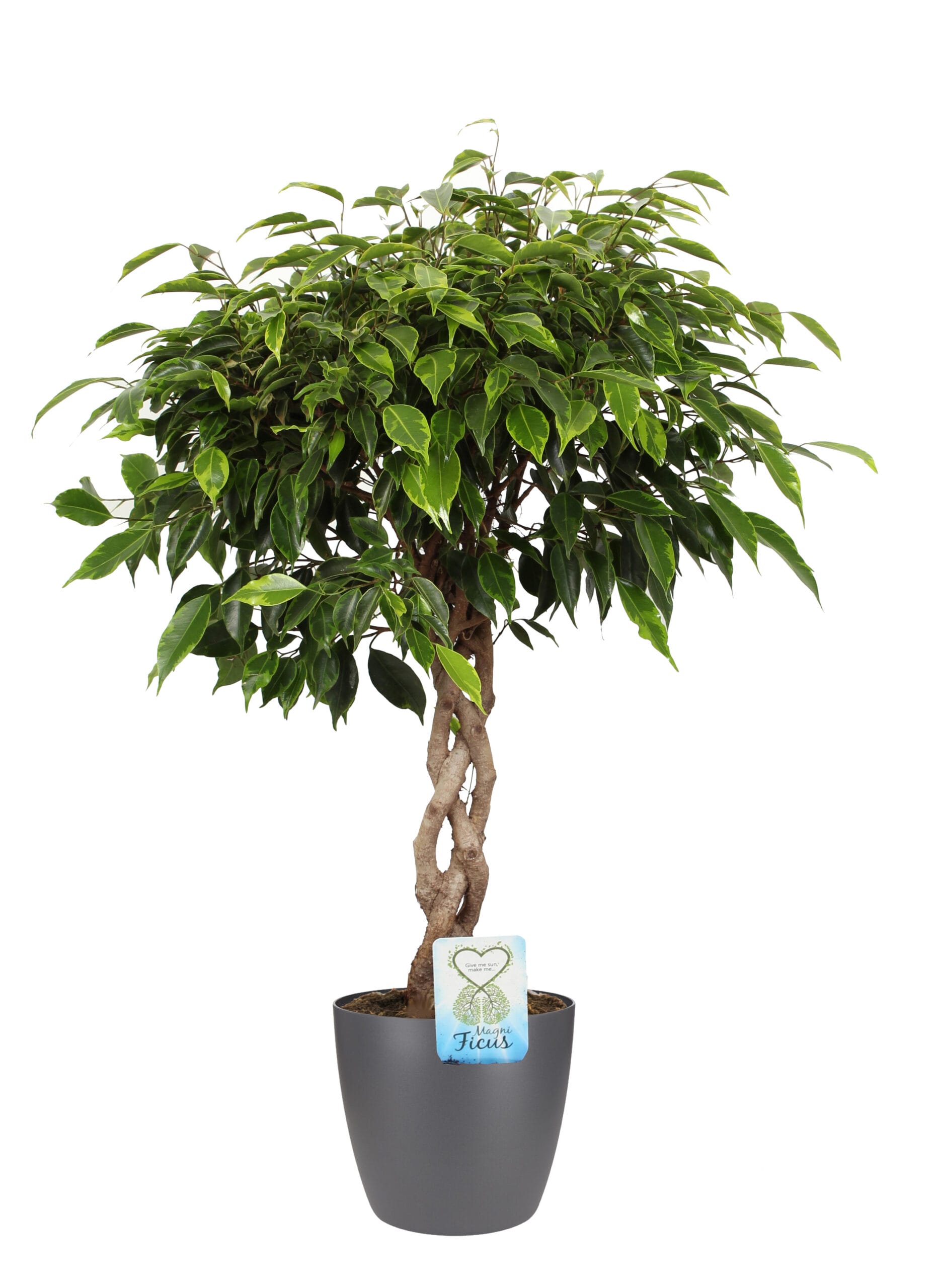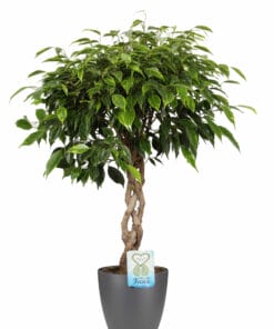 Deze Ficus Benjamina Anastasia van MagniFicus is een erg populaire kamerplant. De plant heeft een gevlochten stam waardoor het een echte blikvanger wordt in jouw interieur. De plant staat graag op een lichte plek, maar niet in de volle zon. De ficus is luchtzuiverend en draagt bij aan een goede luchtvochtigheid.
