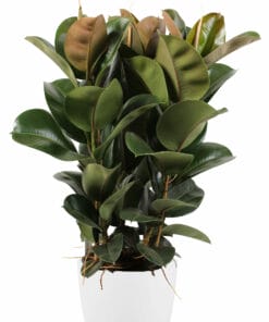 De Ficus Cloe van MagniFicus is een mooie volle ficus. Deze ficus wordt ook wel rubberboom genoemd. Deze plant heeft mooie, stevige ronde bladeren. Er loopt een licht roze nerf door het blad. De plant staat graag op een lichte plaats en wordt niet graag verplaatst. De ficus is luchtzuiverend en draagt bij aan een goede luchtvochtigheid.