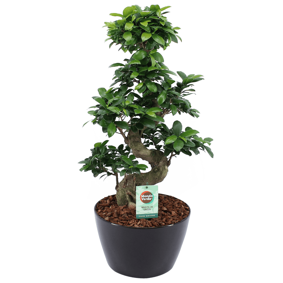 Categorieën: Groene kamerplanten, Binnenplanten met pot, Bonsai boompje, Ficus, Kamerplanten, Pot-plant combinaties, Plant cadeau