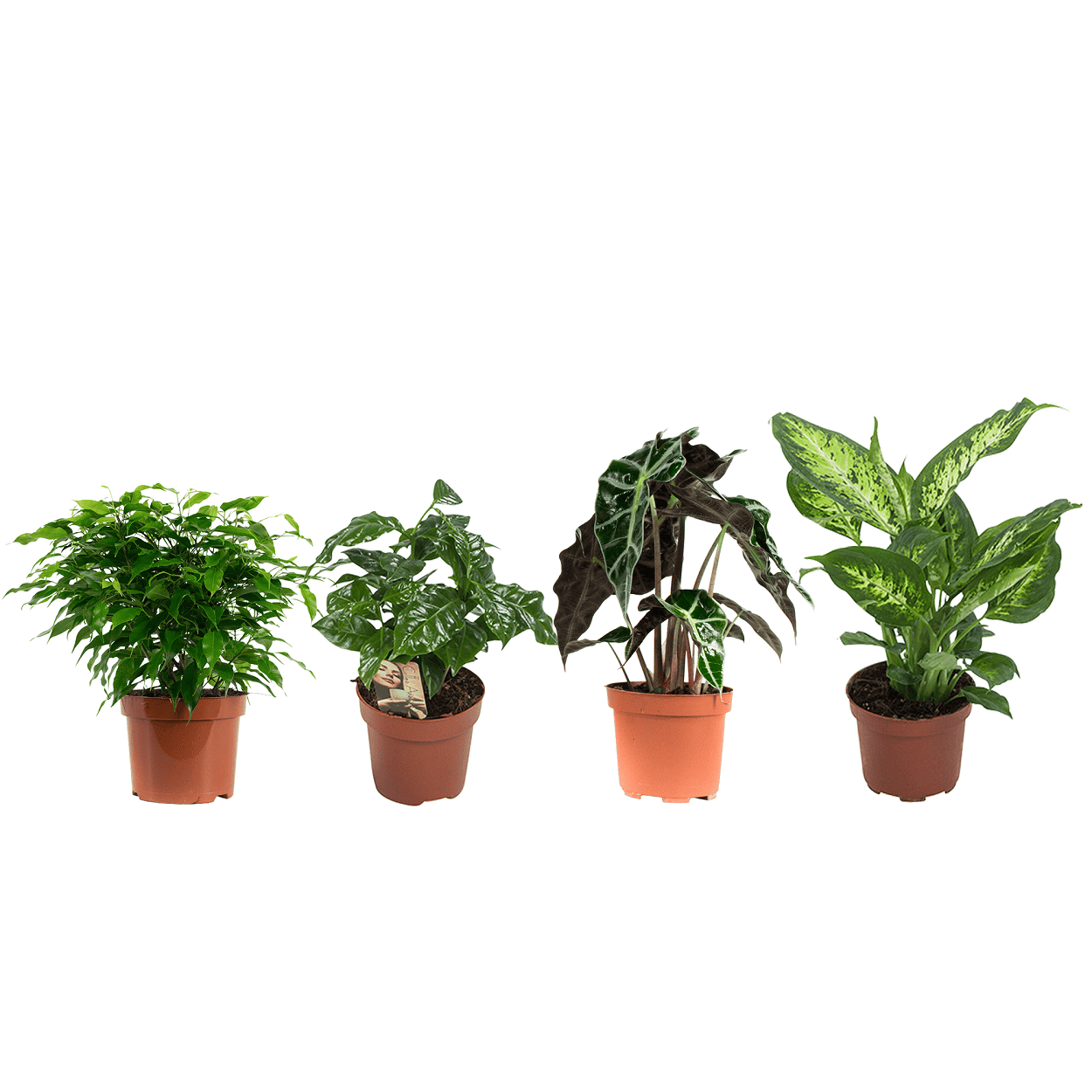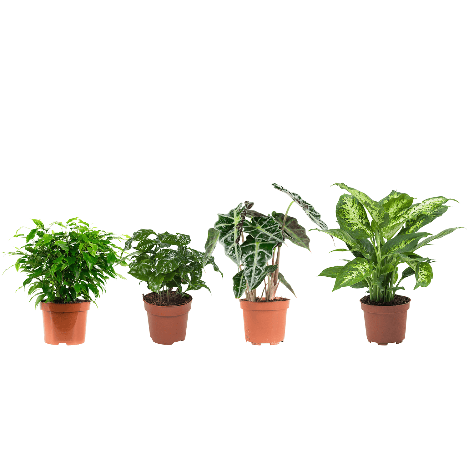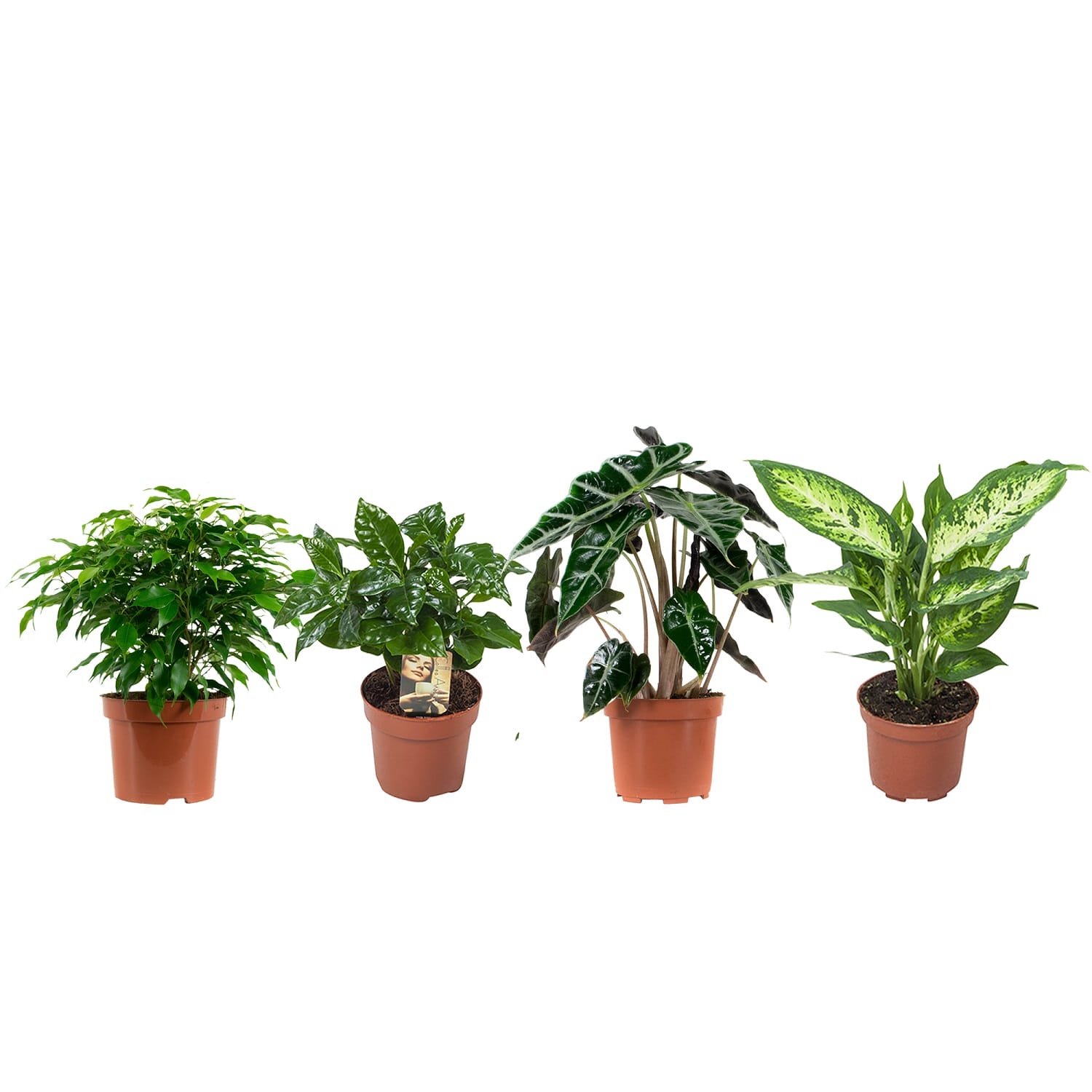 Kamerplanten pakket Ficus, Koffieplant, Olifantsoor, Dieffenbachia – 4 stuks ↑ 25 cm ⌀ 12 cm