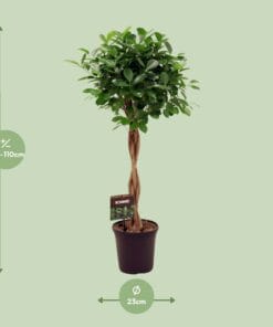 Deze Ficus plant wordt geleverd in een maat van 23 cm, perfect voor elke binnenruimte.De huidige hoogte van deze Ficus boom is ongeveer 110 cm, waardoor het direct impact heeft op uw ruimte.Bekend om te gedijen in halfschaduw omstandigheden, zal deze Ficus plant leven brengen in elke hoek van uw huis.Het verzorgen van deze Ficus is eenvoudig, waardoor het een ideale keuze is voor zowel ervaren als beginnende planteneigenaren.Met zijn prachtige weelderige groene bladeren voegt de Ficus plant een vleugje natuurlijke schoonheid en elegantie toe aan elke kamer.