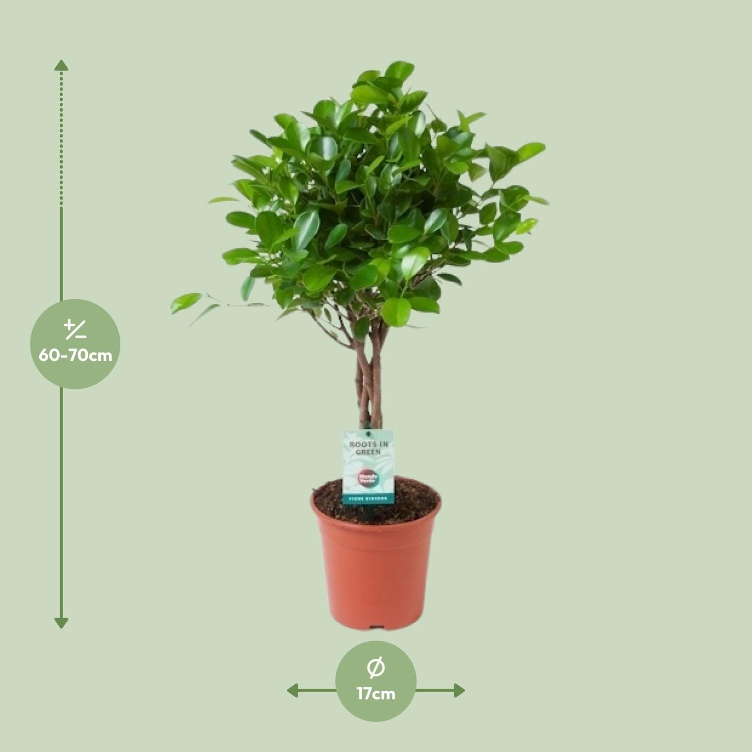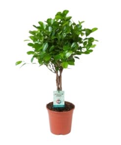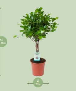 Deze Ficus wordt geleverd in een pot van 17 cm, perfect voor gemakkelijk hanteren en transport.Met een huidige hoogte van ongeveer 70 cm maakt deze Ficus een statement in elke binnenruimte.Deze plant gedijt het beste op een plek in halfschaduw en groeit goed in gebieden met matig licht.De verzorging van deze Ficus is een fluitje van een cent, waardoor het een ideale keuze is voor beginners of drukke individuen.Met weelderige groene bladeren en een compacte groeivorm voegt deze Ficus een vleugje elegantie toe aan elke kamer.