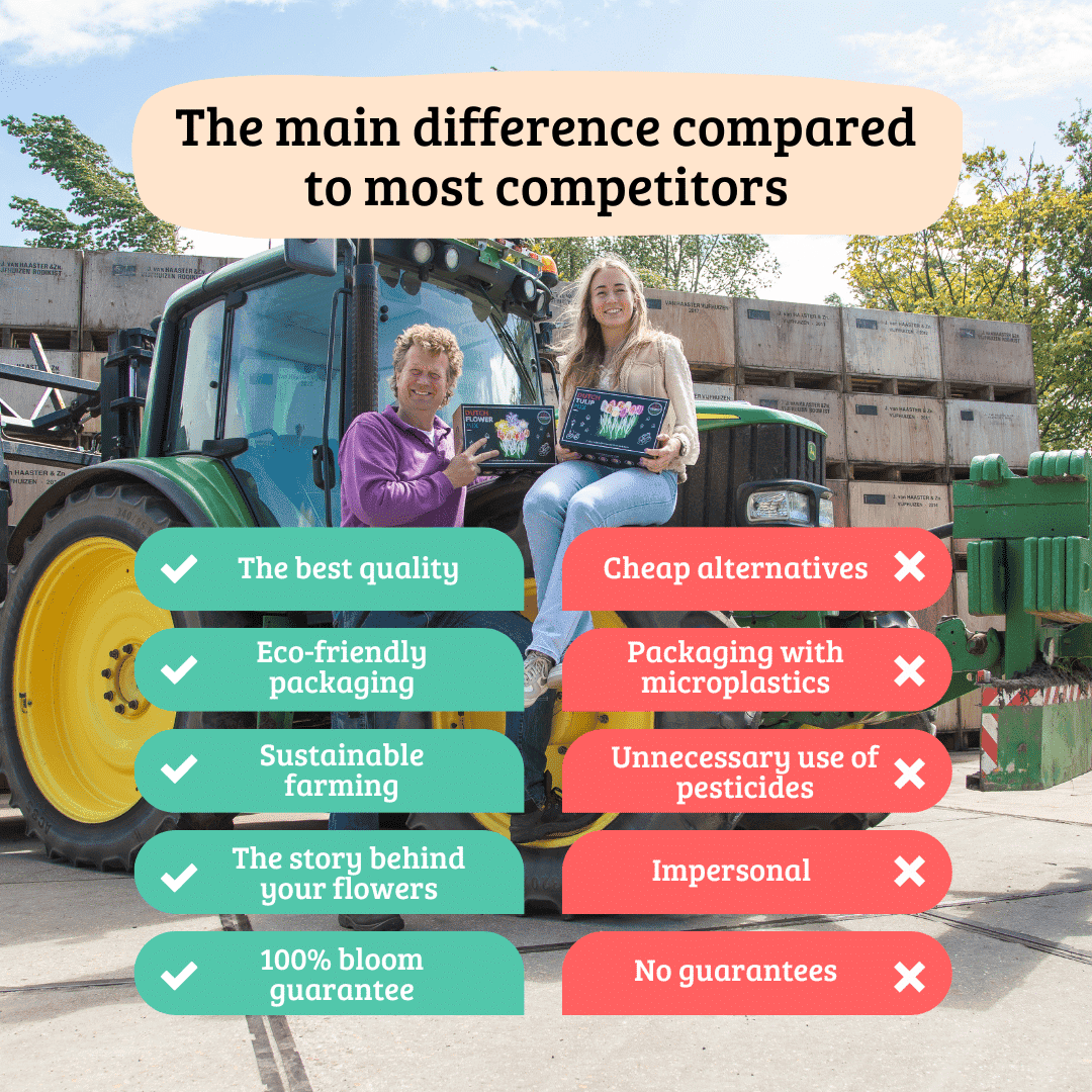 - Inspirerend verhaal: ontdek het verhaal achter Flowerbulbs Amsterdam met het bijgevoegde mapje, dat je meeneemt op een reis door onze passie voor bloemen en bollen.