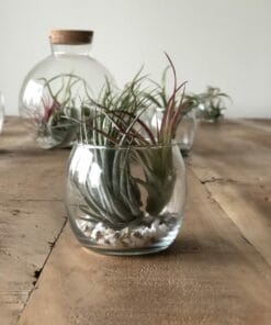Geef je luchtplantjes een vrij gevoel met dit leuke ronde potje van glas! Leuk om te vullen met wat fijn grind en een luchtplantje. Dit product is exclusief luchtplantjes. Kies zelf je favoriete luchtplantjes op onze webshop om hiermee te combineren!