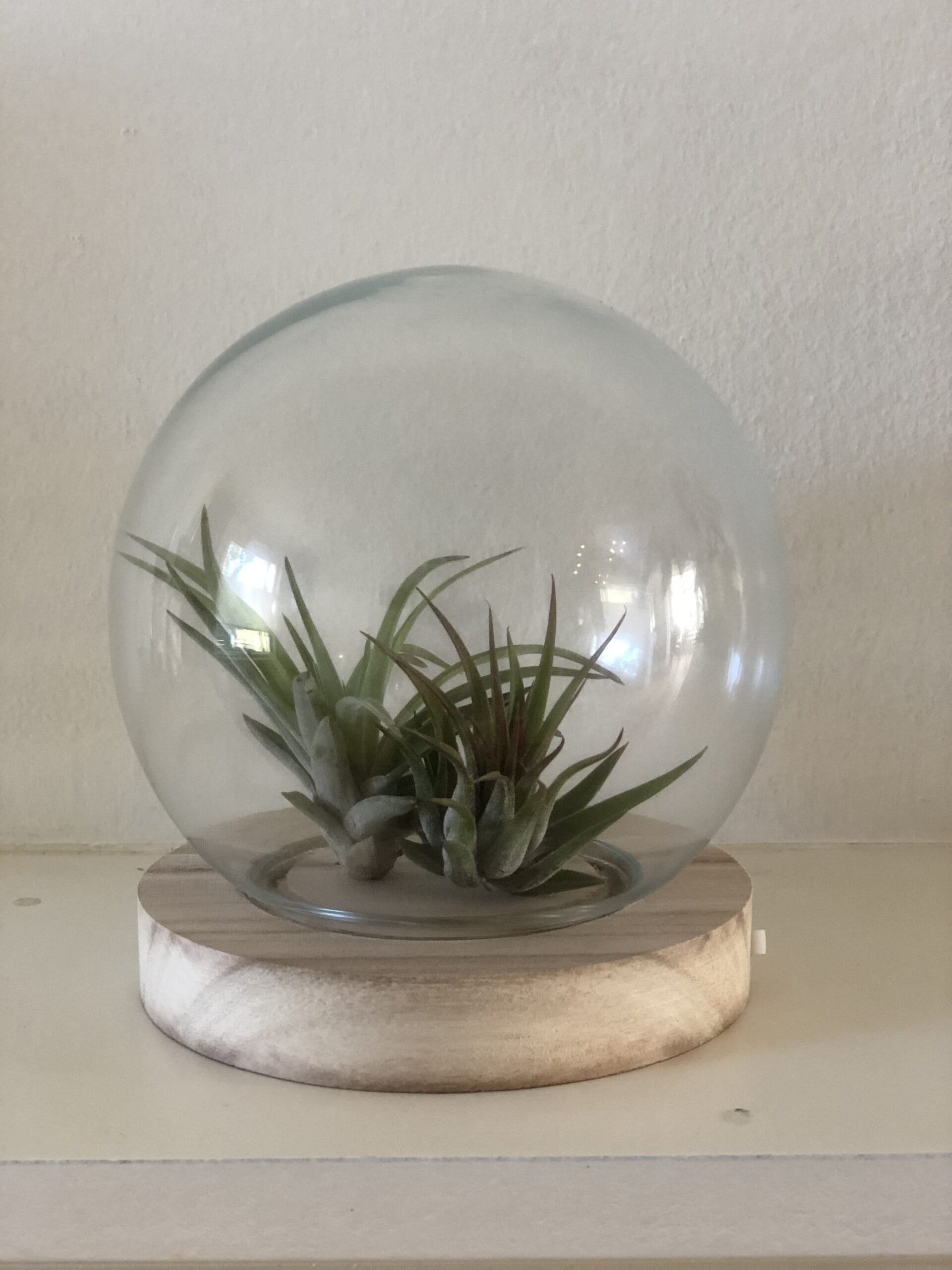 Leuke glazen stolp met een houten voet om je luchtplantjes in te presenteren! De stolp heeft een lichte houtkleur als basis en is voorzien van led lampjes. Als je er luchtplantjes in presenteert worden deze prachtig uitgelicht. Erg leuk voor in de woonkamer of slaapkamer. De stolp kan ook worden gebruikt voor andere kleine plantjes, zoals vetplantjes of kleine cactussen.