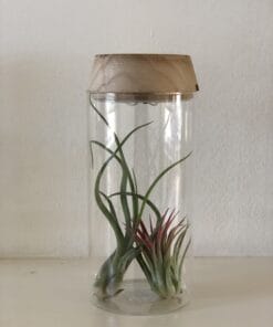 Leuke glazen vaas met een houten voet om je luchtplantjes in te presenteren! De vaas heeft een lichte houtkleur als basis en is voorzien van led lampjes. Als je er luchtplantjes in presenteert worden deze prachtig uitgelicht. Erg leuk voor in de woonkamer of slaapkamer. De vaas kan ook worden gebruikt voor andere kleine plantjes, zoals vetplantjes of kleine cactussen.